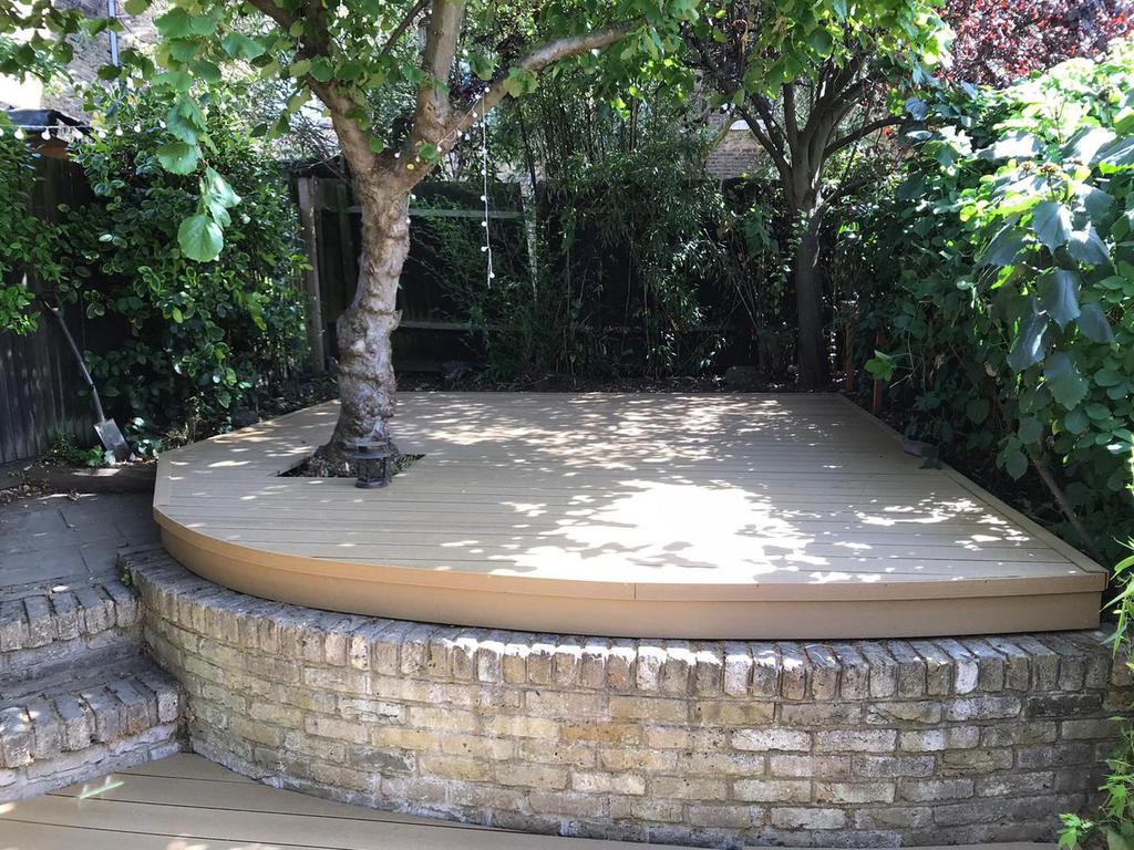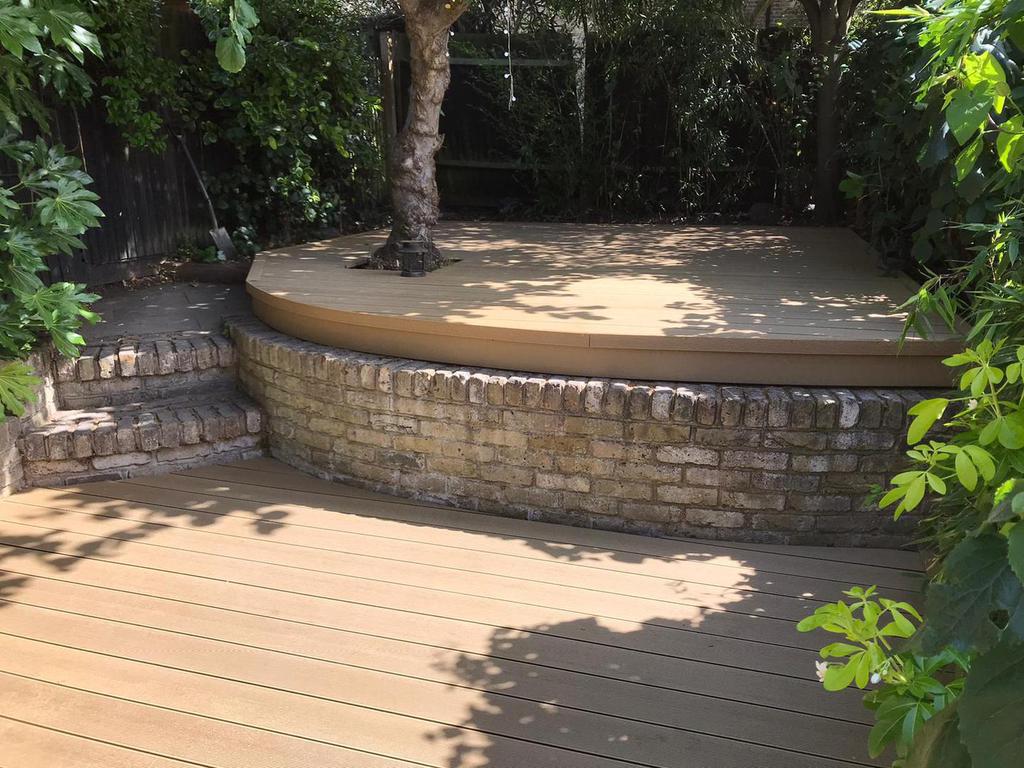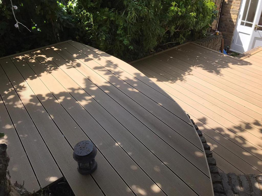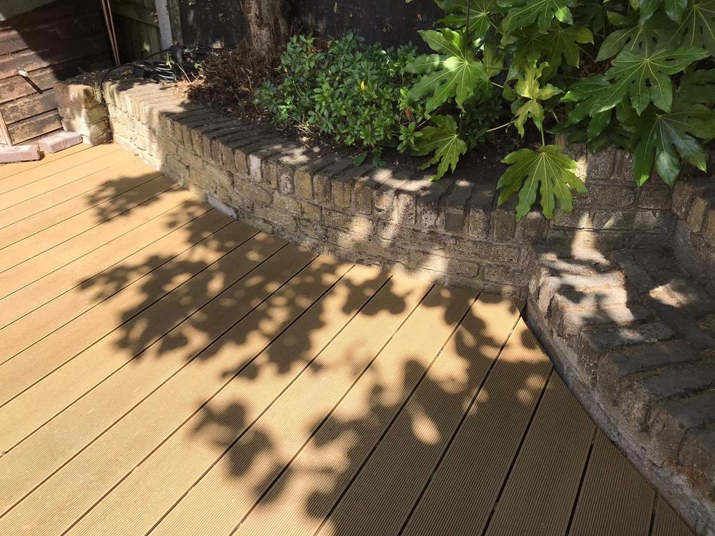 We removed old patio covering and installed composite decking with composite joists over pad foundation. It was slighly challenging project as only access to the garden was through the house, but we managed to keep the job nice and tidy and finished witthin resonable timescale. What a great transformation.