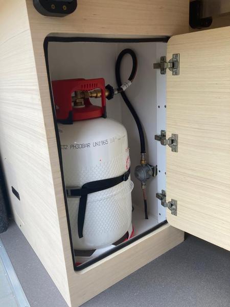 -refillable gas bank (safe refill, cost of full refill around £23 for 22 Litres of Gas)
